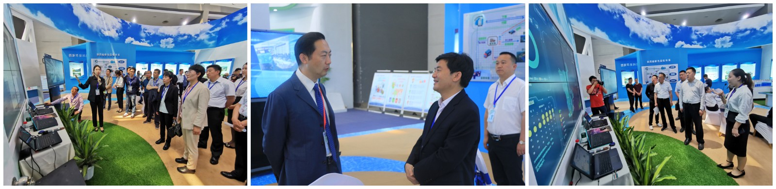 11日下午,副省長魏增軍來到環保集團展區,造型別致的產品模型、立體美觀的各類展板、精致詳實的圖片影像,讓人應接不暇、耳目一新。魏增軍詳細聽取了環保集團主動融入全省“藍天、碧水、凈土、青山”四大保衛戰工作開展情況介紹,在智慧環保-環境智能網格化監管平臺演示、關中固體廢物處置利用中心項目模型前,不時詢問工作人員相關設施設備的運行處置情況。省會展中心黨委書記、主任李建義一同參觀。